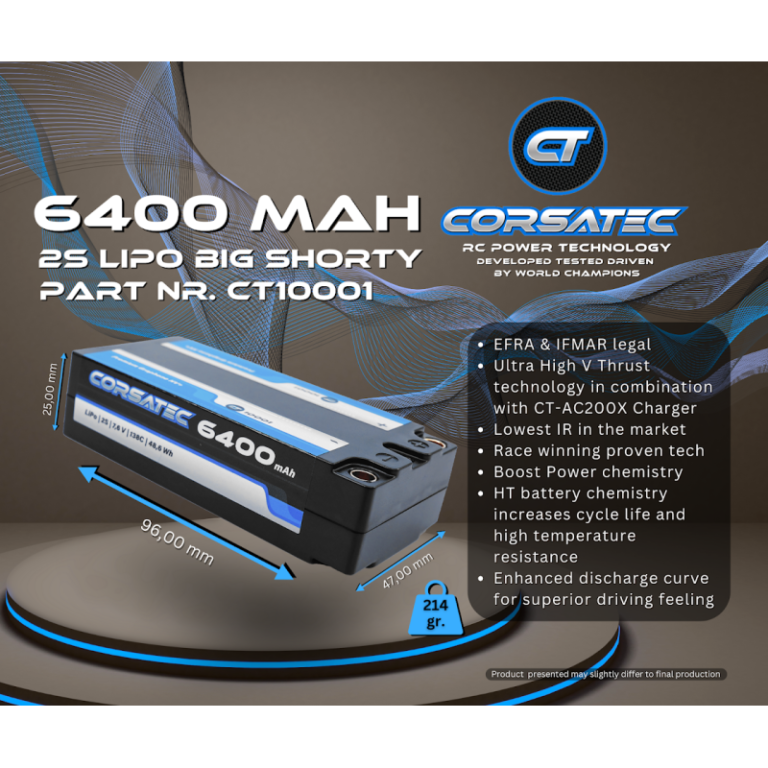 32CT10001 Accu Lipo 2S HV+ Shorty 6400mah 138C Graphene - CORSATEC - CT10001 Référence : 32CT10001 79,00 € Quantité Ajouter au panier