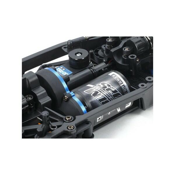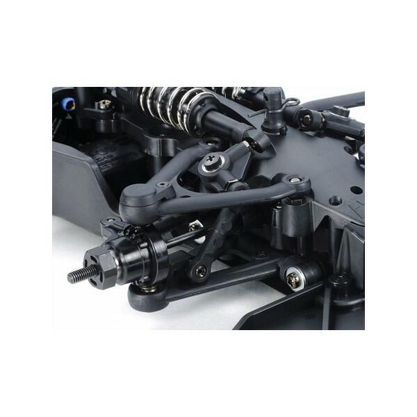 Moteur Type 540 inclus • Transmission 4x4 par cardans avec différentiels à huile type TB-05 pour un fonctionnement souple et un rendement optimisé. • Suspensions avant et arrière inboard avec triangles longs et fusées droite et gauche identiques pour optimiser l’effet de levier et faciliter la maintenance. • Amortisseurs hydrauliques activés par barres de poussé et renvois coudés. • Différentes entretoises permettent un réglage très fin des angles de pincement, chasse et carrossage. • Pare-chocs et supports de carrosserie alternatifs pour carrosserie Formula E ou Touring Car. • Compatible avec des packs d’accus aux dimensions standard IFMAR. • Très nombreuses pièces optionnelles Hop-Up bientôt disponibles !