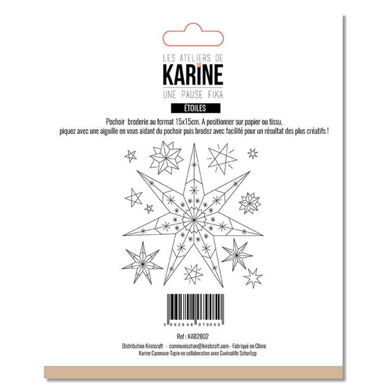 Pochoir Broderie - UNE PAUSE FIKA - Etoiles - Les Ateliers de Karine