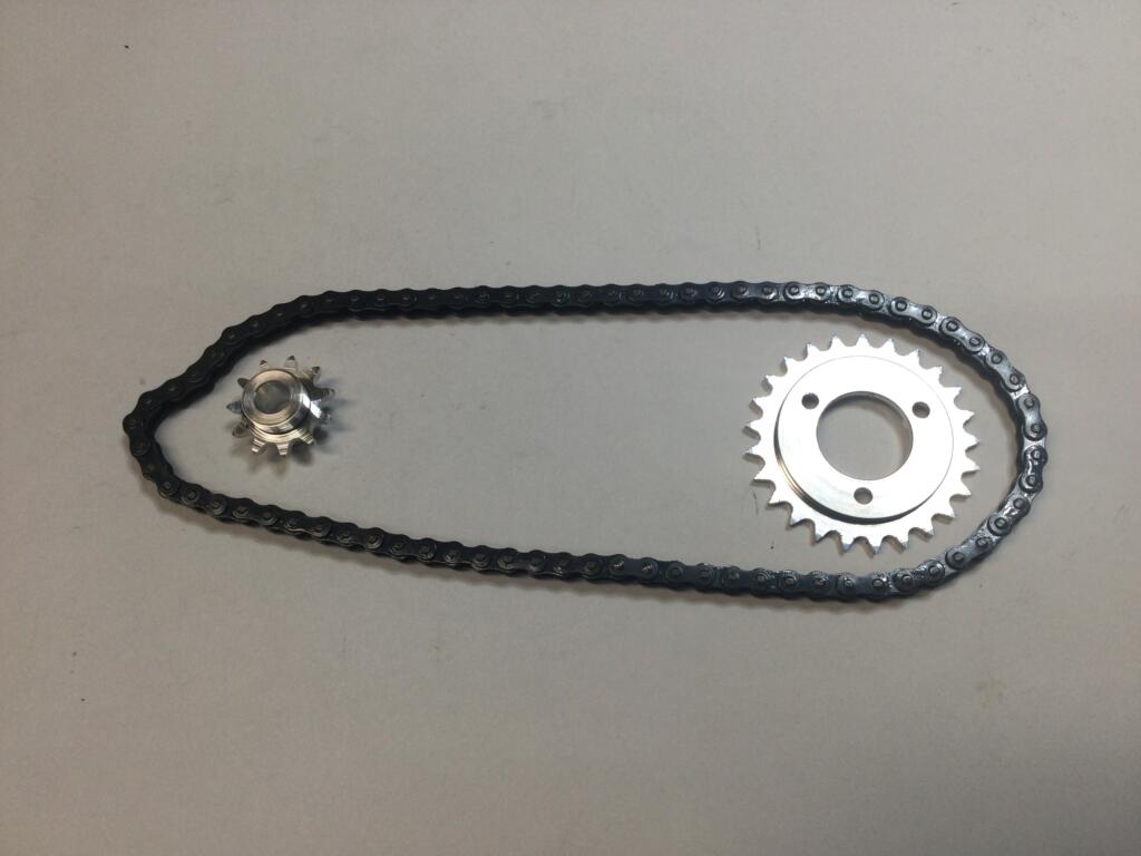 kit chaine pour moto avec monobras court (entraxe 130mm), avec axe de 6mm a goupille