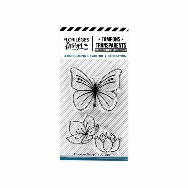 Tampon Clear Florilèges Designs - Capsule Un Jour Spécial - PAPILLONS ET FLEURS