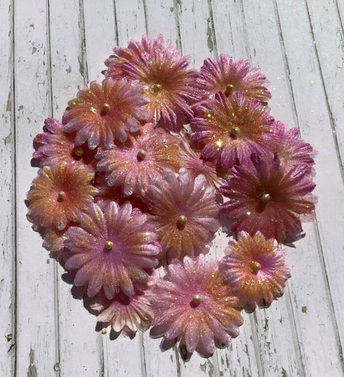 Légèrement pailleté - Superposition d'une pétale en satin et une pétale en tulle avec un pistil au centre