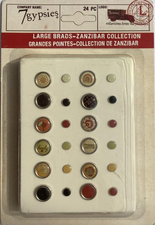 12 Petits Brads Epoxy de couleurs unis et 12 Brads plus large à Motif