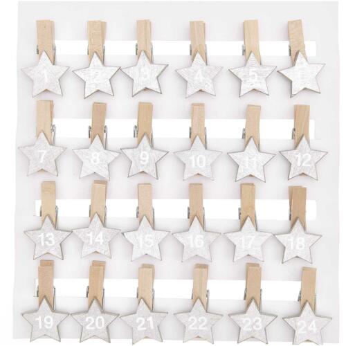 CALENDRIER AVENT - Assortiment de Petites Etoiles en Bois A coller avec les 24 Chiffres pour Calendrier de l'avent