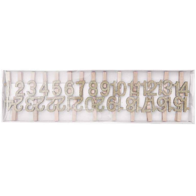 Calendrier de l'Avent - PINCE A LINGE Numéro Calendrier Avent Chiffres Paillettes Or