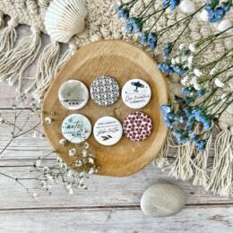 Assortiment de 6 Badges assortis aux papiers de la collection.