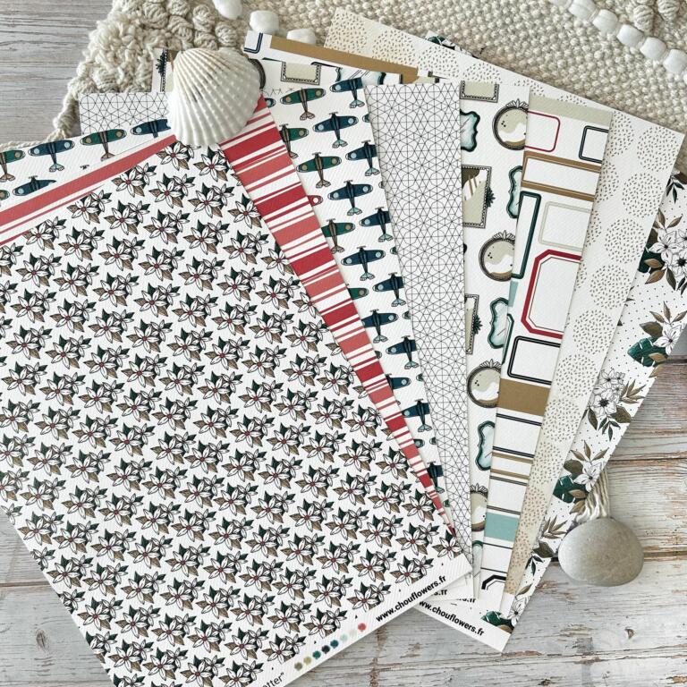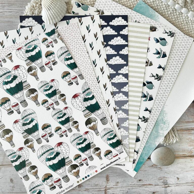 Assortiment 12 papiers Imprimés de différents textures et motifs