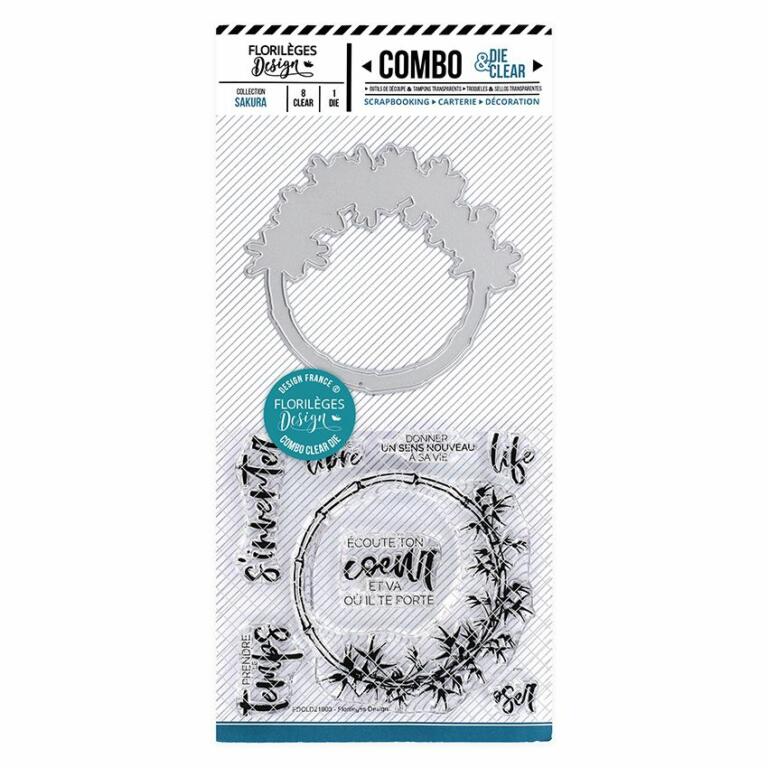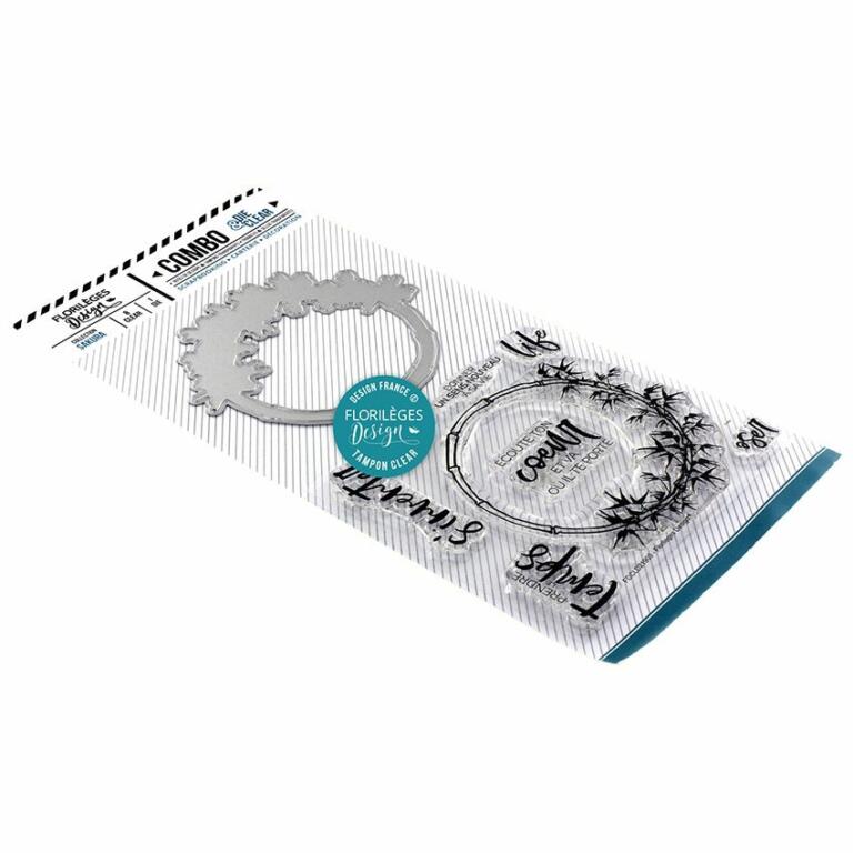 Combo Die/Tampon Clear Florilèges Designs - Collection Sakura - COURONNE DE BAMBOU
