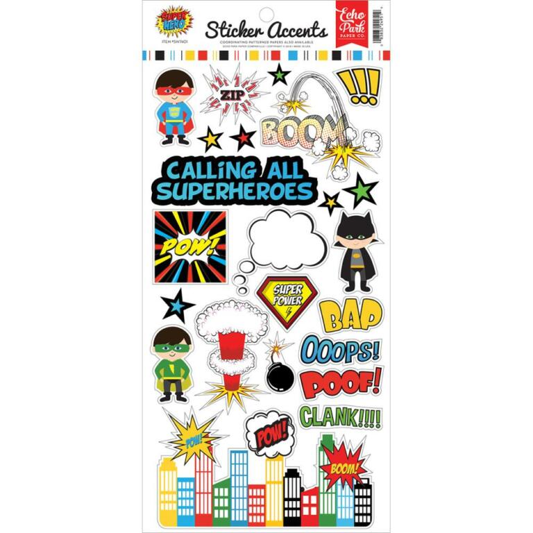 Stickers Comics - Echo Park coordonnés aux papiers de la collection Super Hero