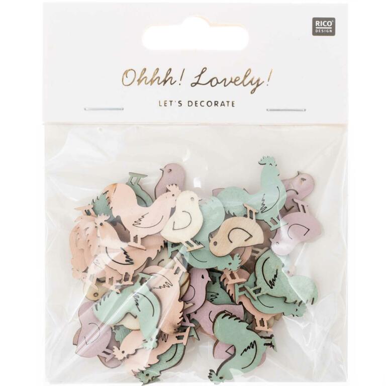 Déco de Pâques: CONFETTI COQ & POUSSIN en bois à coller