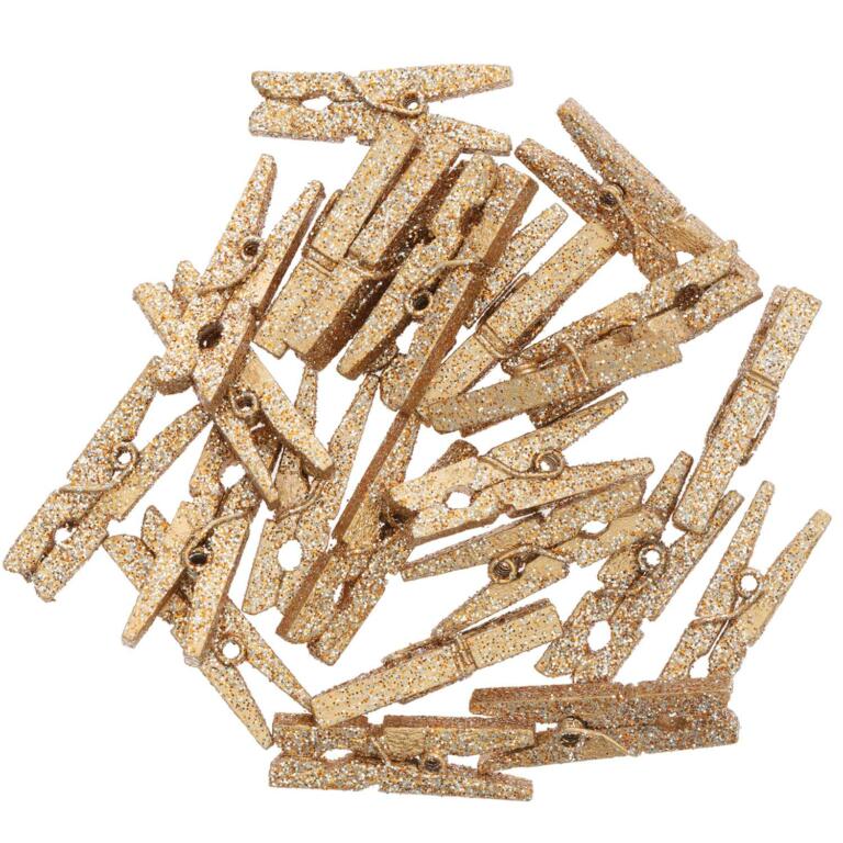 Petites Pinces à Linge Or à Paillette pour décorer, boites cadeaux et calendriers de l'avent