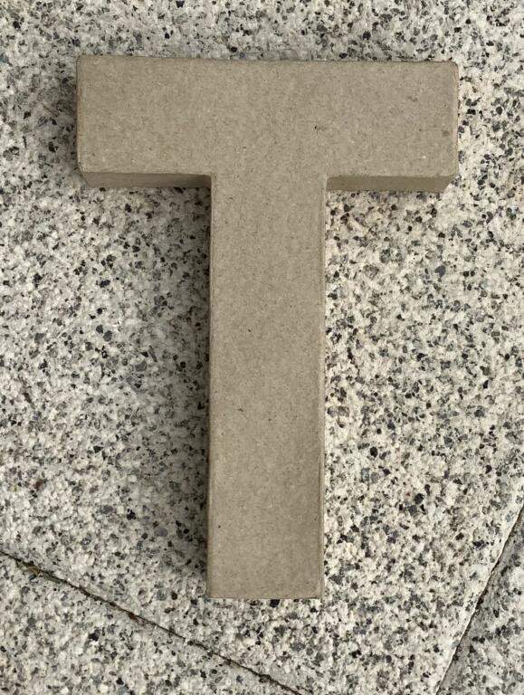 Dimension de la lettre T : 13.5x20cm - Epaisseur: 2.5cm environ