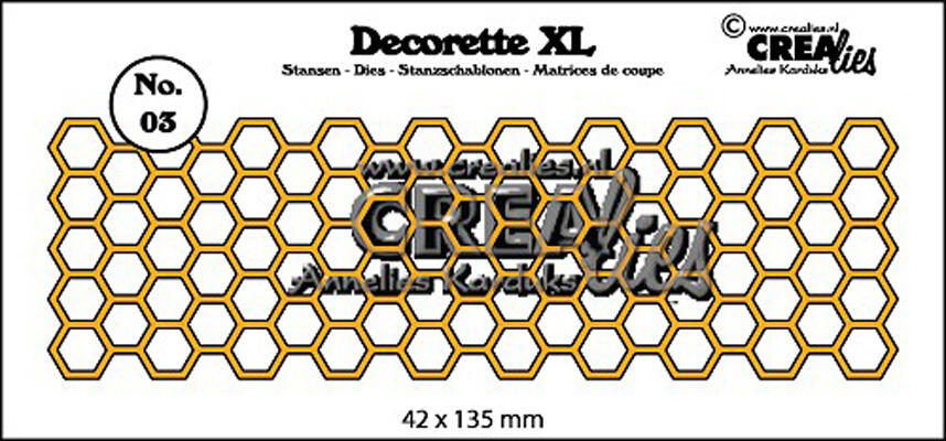 Dies Crealies - Frise Honeycomb DECORETTE XL 03 Référence : CCLDRXL03 10,60 € Quantité Ajouter au panier