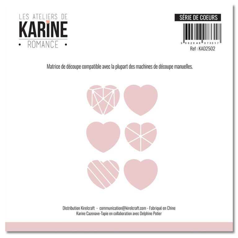 Dies Découpe Les Ateliers de Karine - Matrice de découpe SERIE DE COEURS - Collection ROMANCE