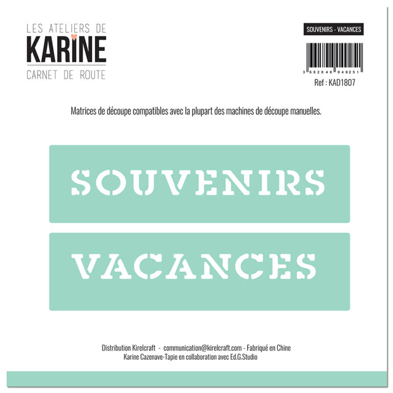 Dies Découpe Les Ateliers de Karine - Matrice de découpe SOUVENIRS VACANCES - Carnet de Route