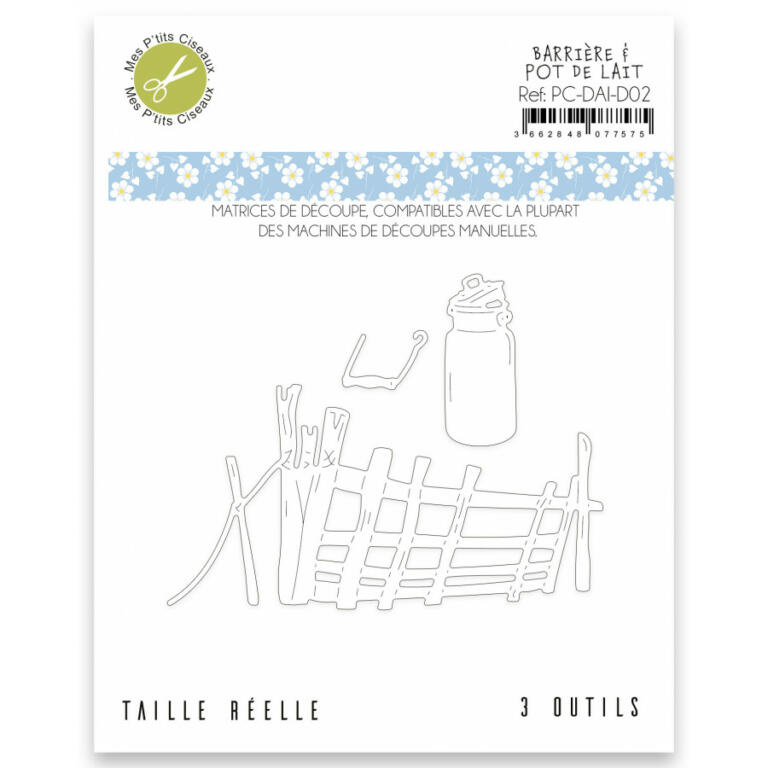 Dies Découpe Mes P'Tits Ciseaux - Matrice découpe BARRIERE ET POT DE LAIT Collection Daisy