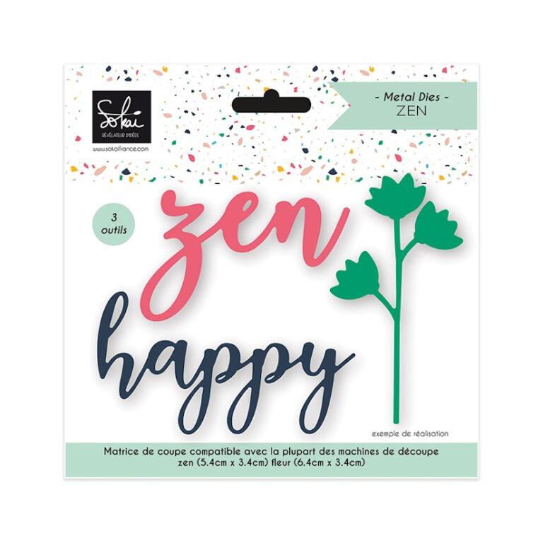 3 Découpes : dim 5.5x3.5cm environ pour " =Zen" et 7x4 cm environ pour "happy"