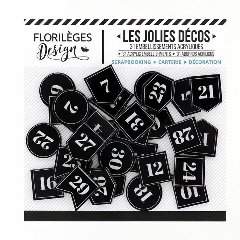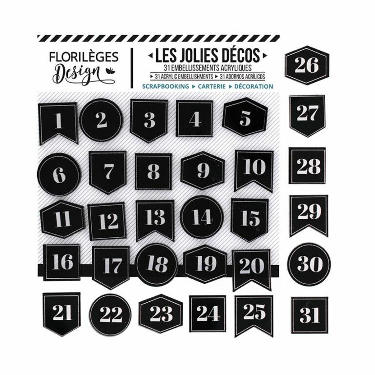 Embellissements en Acrylique : ETIQUETTES NUMEROTEES Florilèges Design