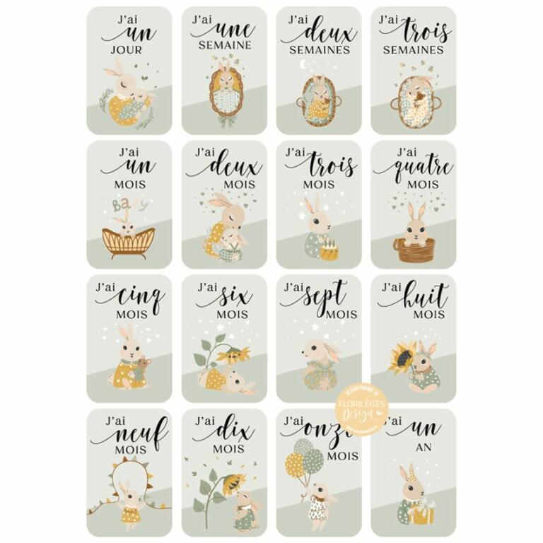 Assortiment de 16 Cartes Bébé, Ma première année; coordonnées aux papiers de la collection A PETITS PAS