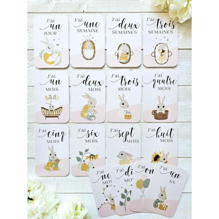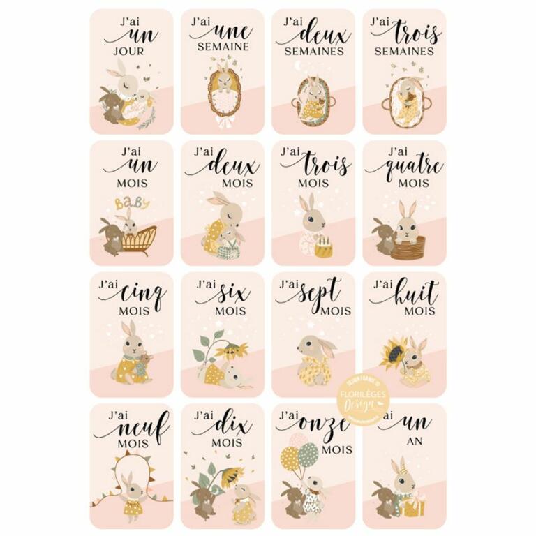 Assortiment de 16 Cartes Bébé, Ma première année; coordonnées aux papiers de la collection A PETITS PAS