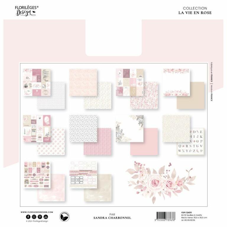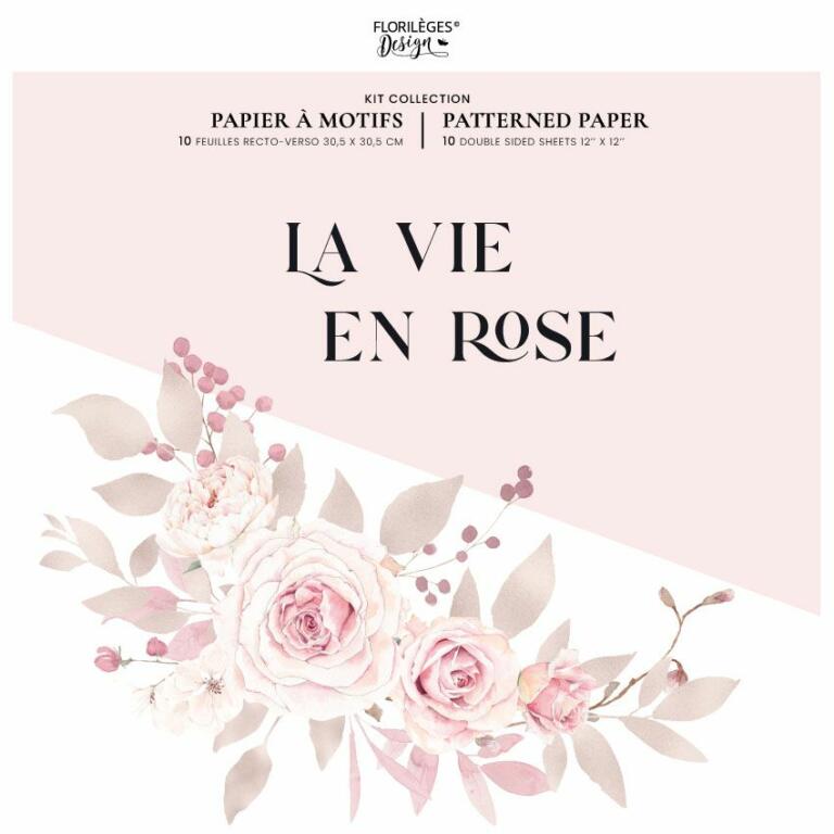 Florilèges Design - Collection LA VIE EN ROSE - Kit Papiers Imprimés 10 feuilles recto verso