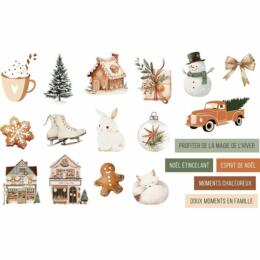 Assortiment de petites décos en acryliques , aux motifs variés sur le thème de Noël assorties aux papiers de la Collection Histoires d'Hiver de Florilèges Design