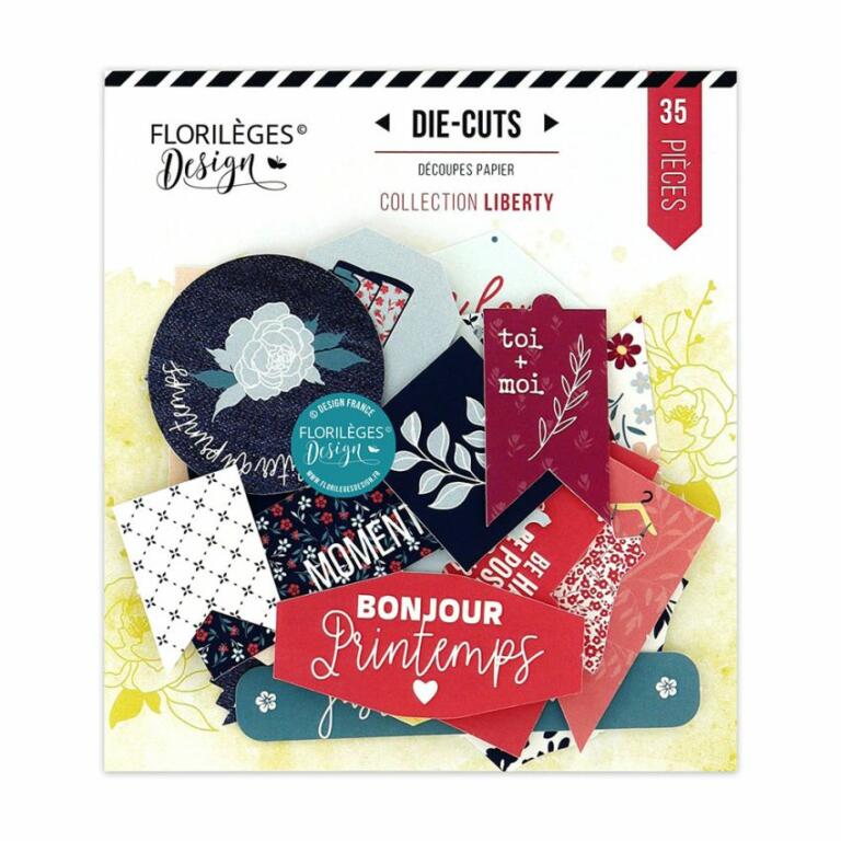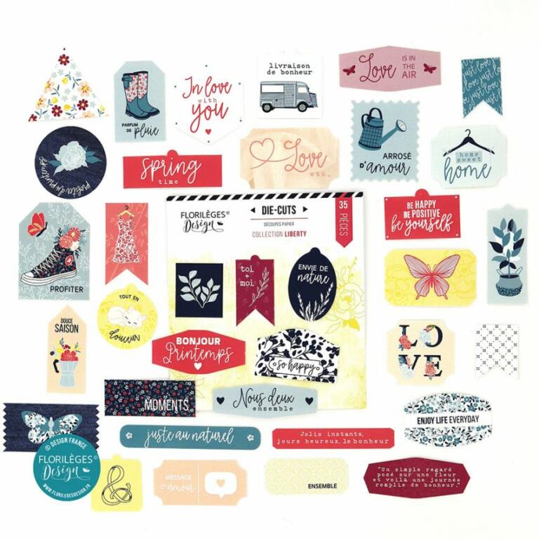 Assortiment de Die cuts Imprimés coordonnés aux papiers de la collection.