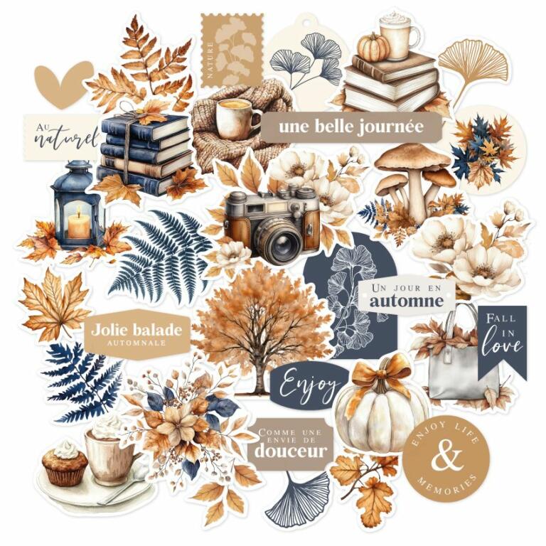 Assortiment de Petites Découpes imprimées, en papier, coordonnées aux papiers de la collection GINKGO