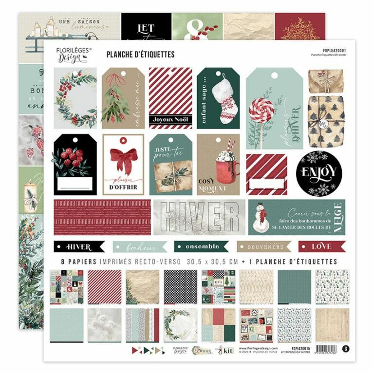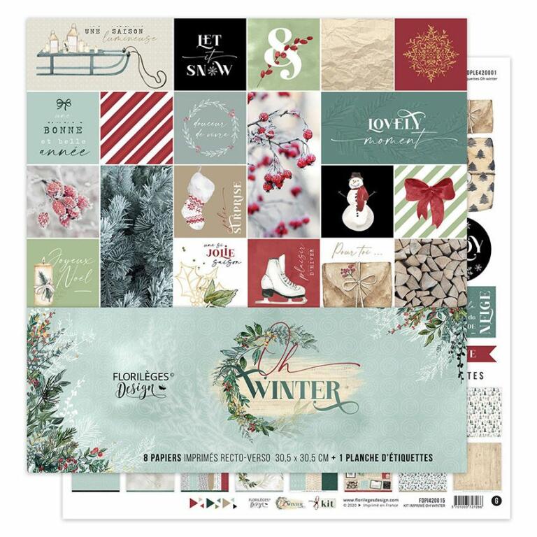Florilèges Design - Oh Winter - Le Kit de 8 Papiers + 1 planche étiquette
