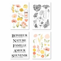 Assortiment de 4 planches de stickers ( fond transparent ) aux motifs variés coordonnées aux papiers de la collection