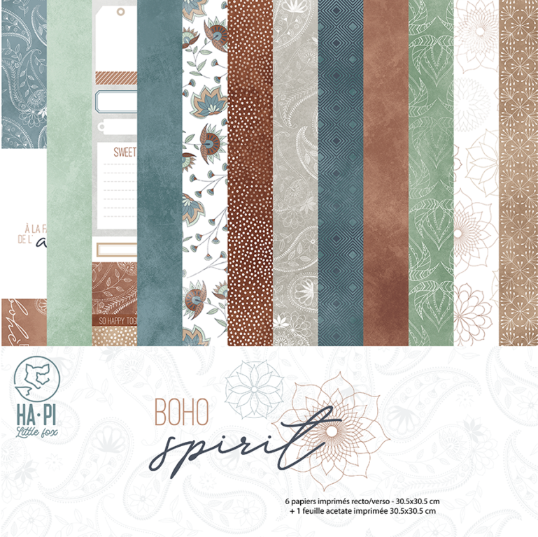 HA.PI LITTLE FOX - LE KIT de la Collection BOHO SPIRIT ( 6 Papiers Imprimés + 1 Feuille Acétate )