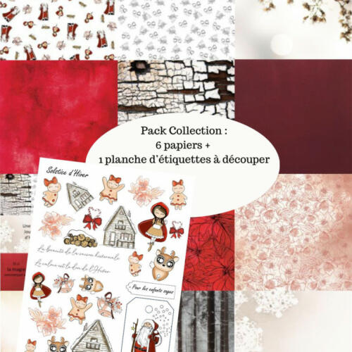 Assortiment des 6 papiers imprimés de la collection + 1 feuille Acétate ( imprimé transparent) assortie et exclusivité du kit