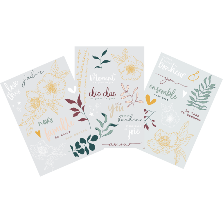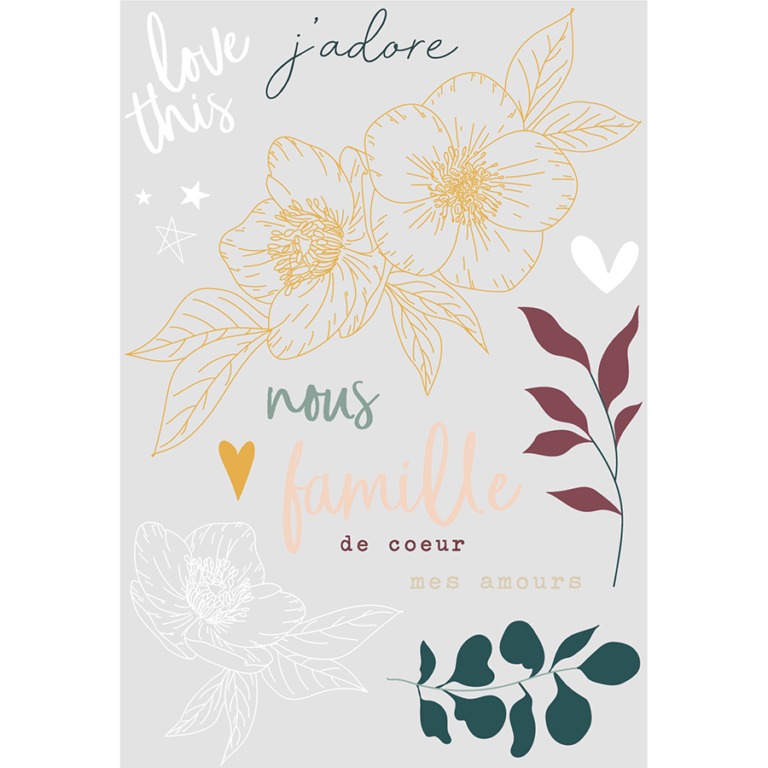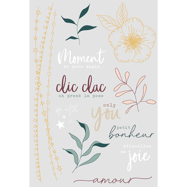 Transferts - Décalcomanies Motifs et mots coordonnées aux papiers de la collection