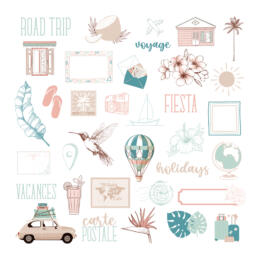 Assortiment de Petites Vignettes ( dies cuts Calques) assorties aux papiers de la même collection.