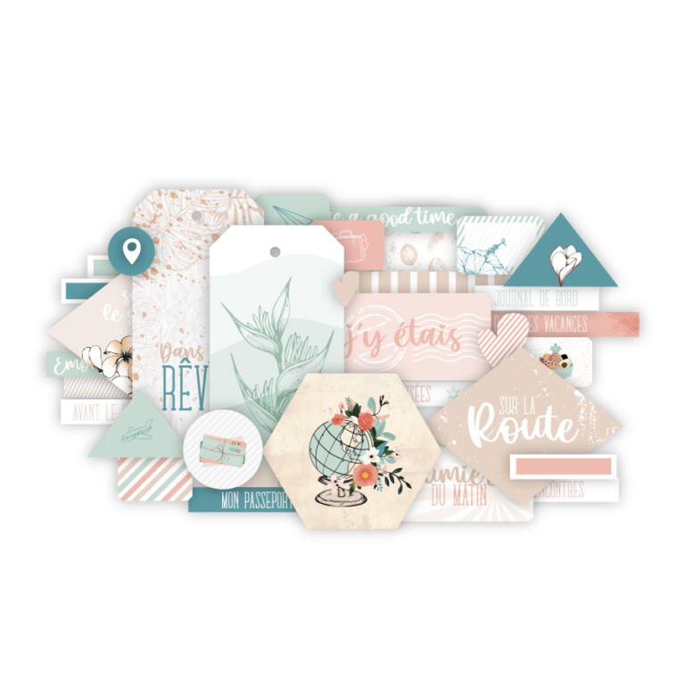 Assortiment de Petites Vignettes ( dies cuts ) assorties aux papiers de la même collection.