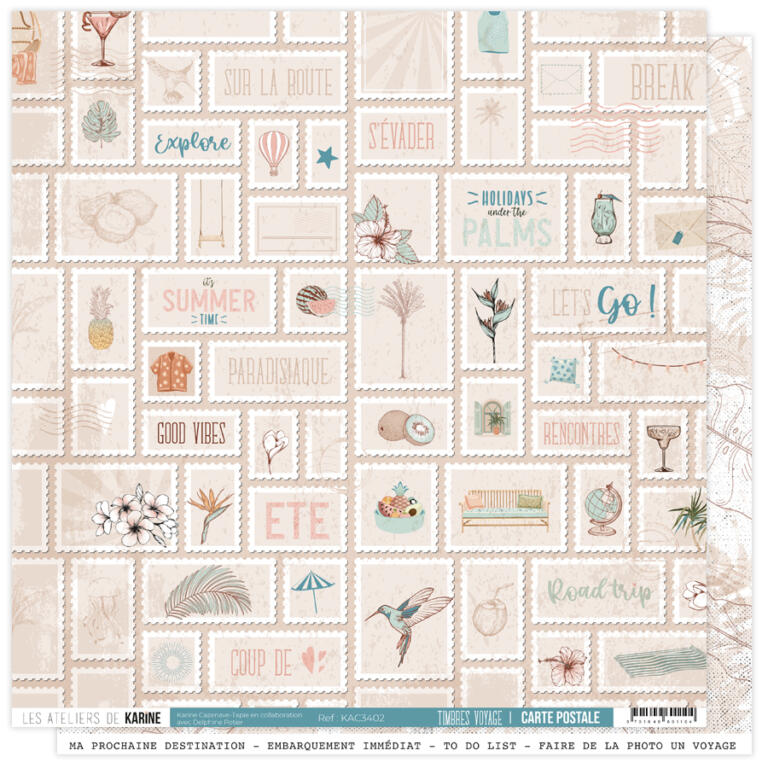 Les Ateliers de Karine - CARTE POSTALE - Papier N°2 Timbres Voyage