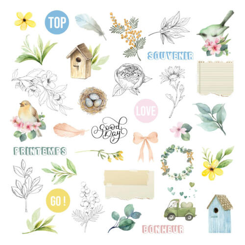 Assortiment de Petits Stickers Etiquettes et Bordures assortis aux papiers de la même collection