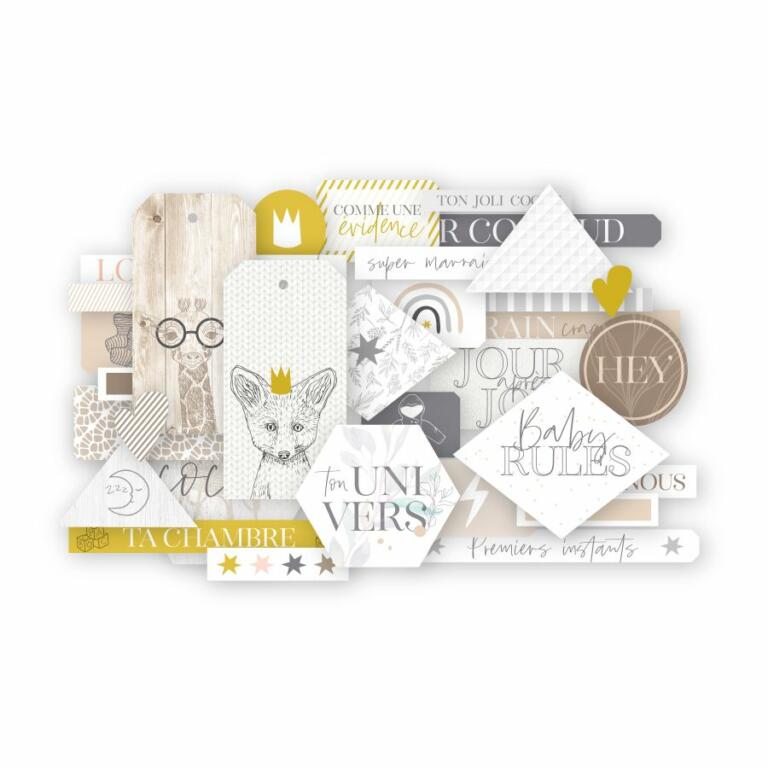 Assortiment de Petites Vignettes ( dies cuts ) assorties aux papiers de la même collection.