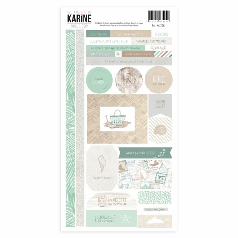 Assortiment de Petits Stickers Etiquettes et Bordures assortis aux papiers de la même collection.