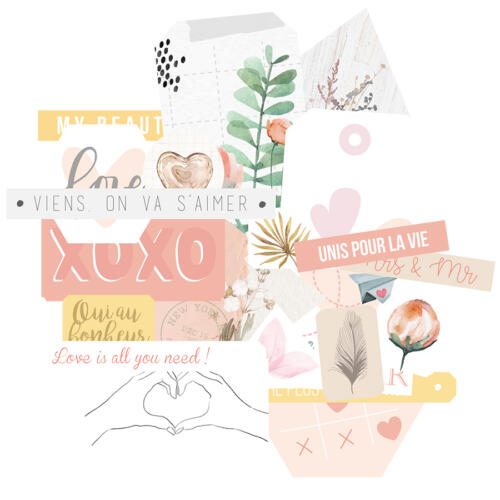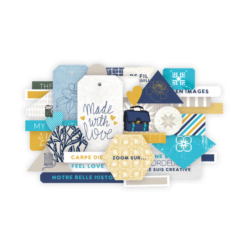 Assortiment de Petites Vignettes ( dies cuts ) assorties aux papiers de la même collection.