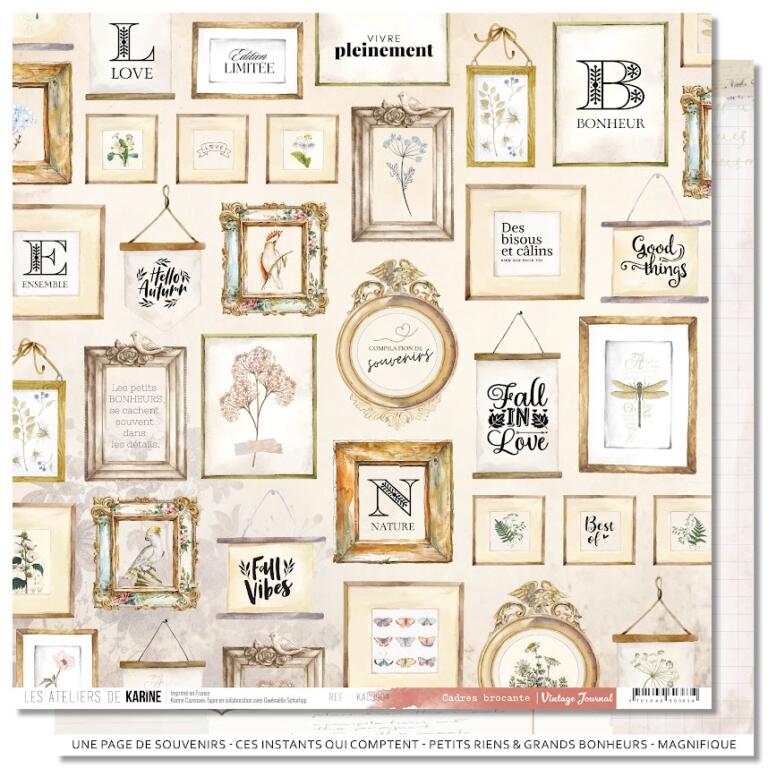 Les Ateliers de Karine - VINTAGE JOURNAL - Papier n°4 Cadres Brocante