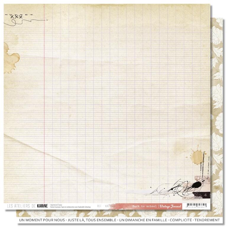 Les Ateliers de Karine - VINTAGE JOURNAL - Papier n°5 Back To School