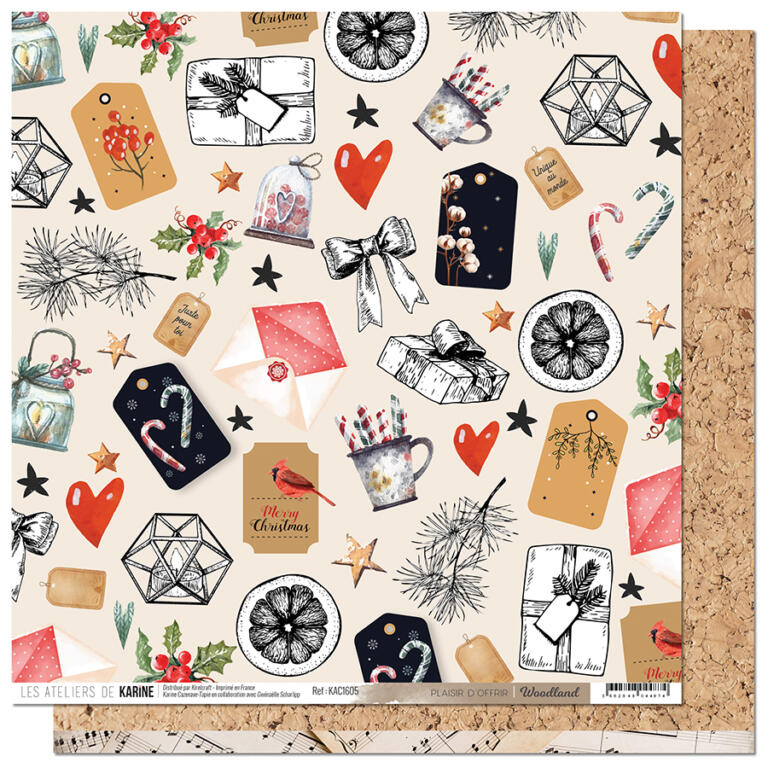 Les Ateliers de Karine - WOODLAND N°5 Plaisir d'Offrir - Papier Scrap 30x30