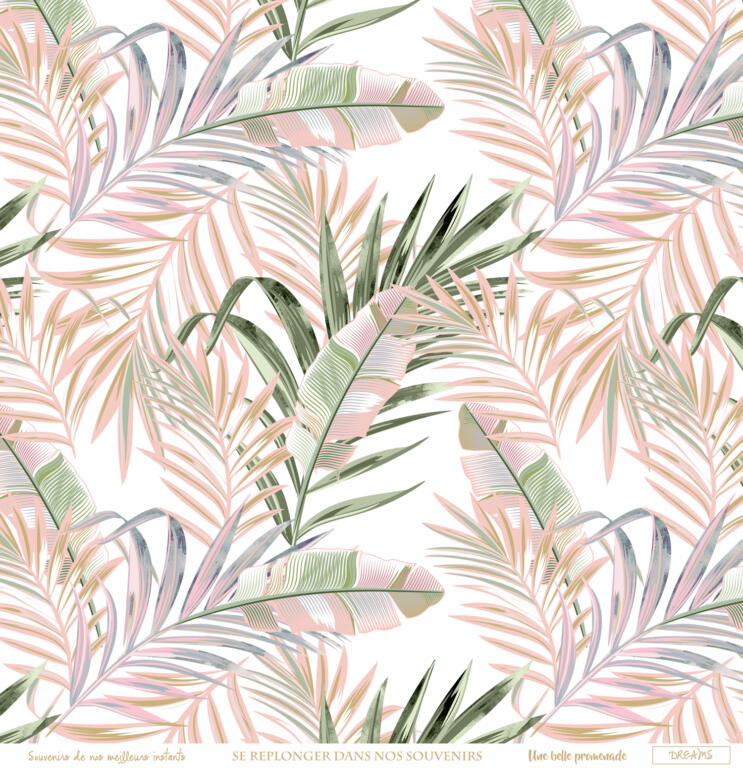 Une Collection ornée de motifs tropicaux dans des tons Doux et Pastels.