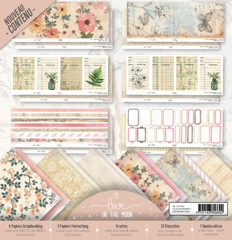 Love In The Moon - Collection PRINTEMPS - Assortiment Papiers et Etiquettes