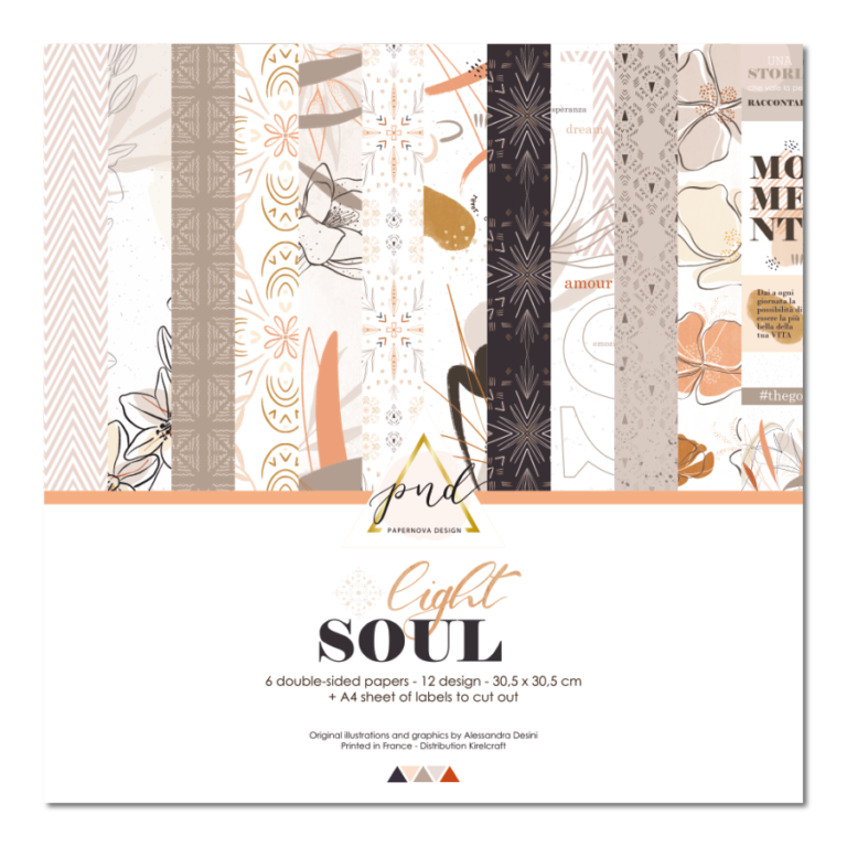 Paper Nova Design - LE KIT LIGHT SOUL ( 6 Papiers + 1 planche de Fleurs et Etiquettes Exclu du KIT )