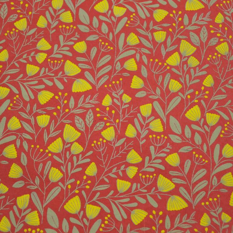 Papier Fantaisie 100% Coton - FLORA Rouge/Tournesol/Beige