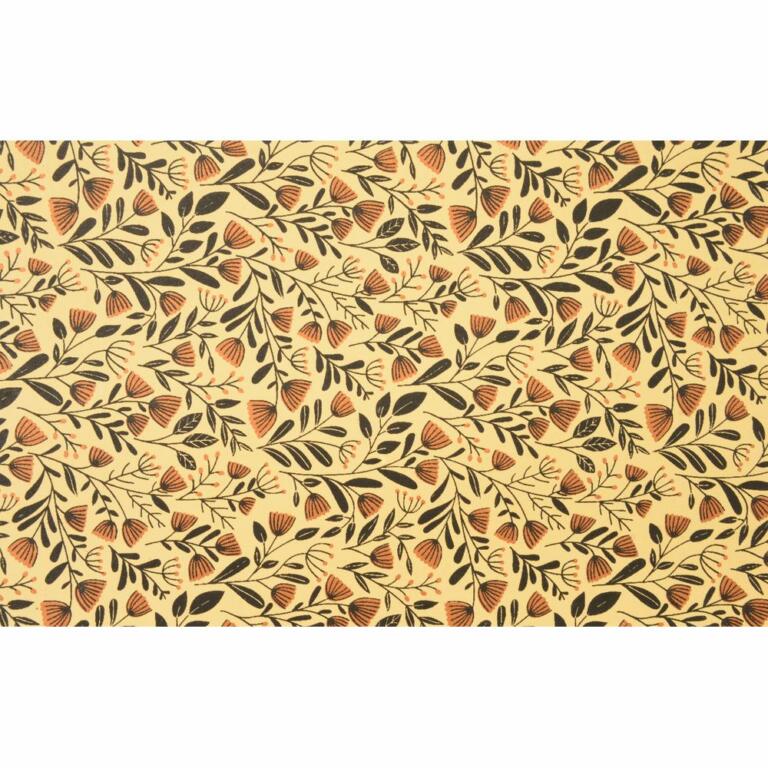 Papier Fantaisie 100% Coton - FLORA Sable/Noir/Cuivre