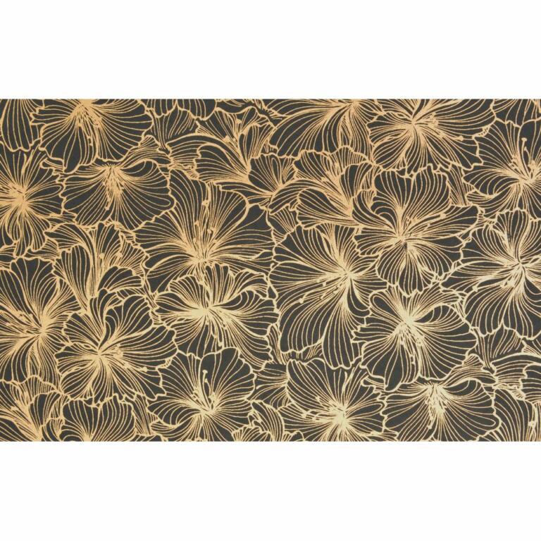 Papier Fantaisie 100% Coton - HIBISCUS Noir/Or