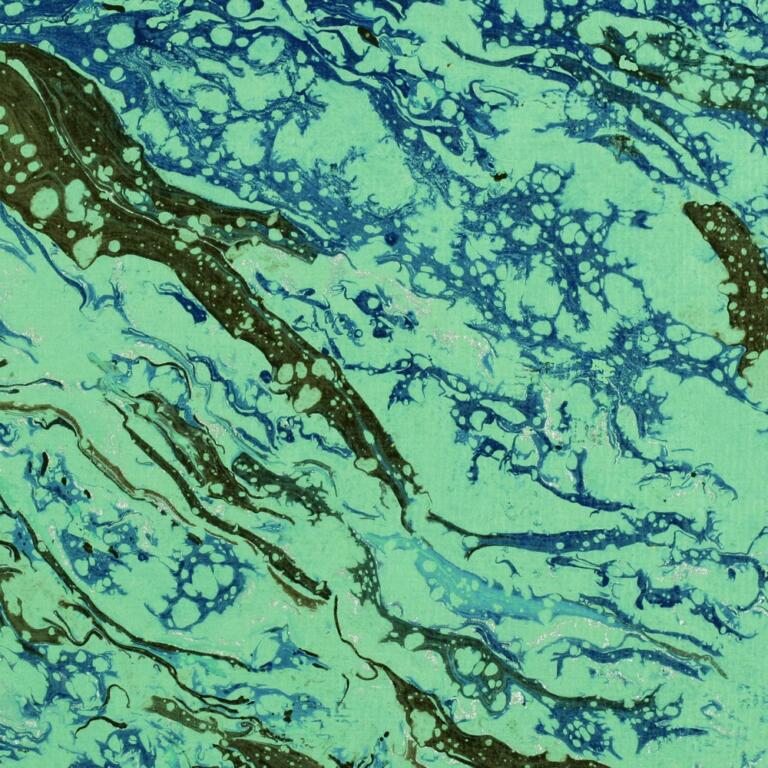 Papiers marbrés à la cuve réalisés un par un, artisanalement, et séchés à l’air libre. Ainsi chaque feuille est une pièce unique.